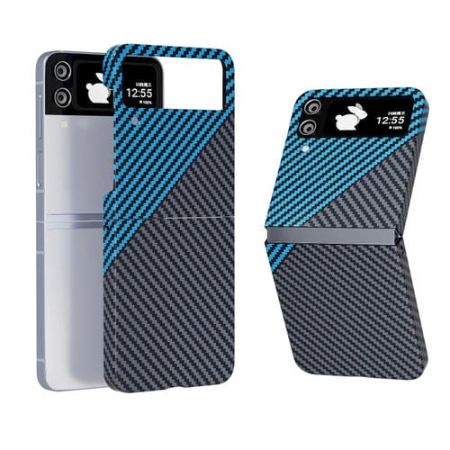 Funda Protectora Samsung Galaxy Z Flip4 Textura Fibra de Carbono con Calcomanía (Gris Azul)
