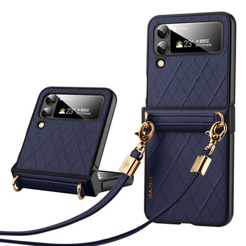 Funda para teléfono Samsung Galaxy Z Flip4 Sulada con textura rómbica (Azul)