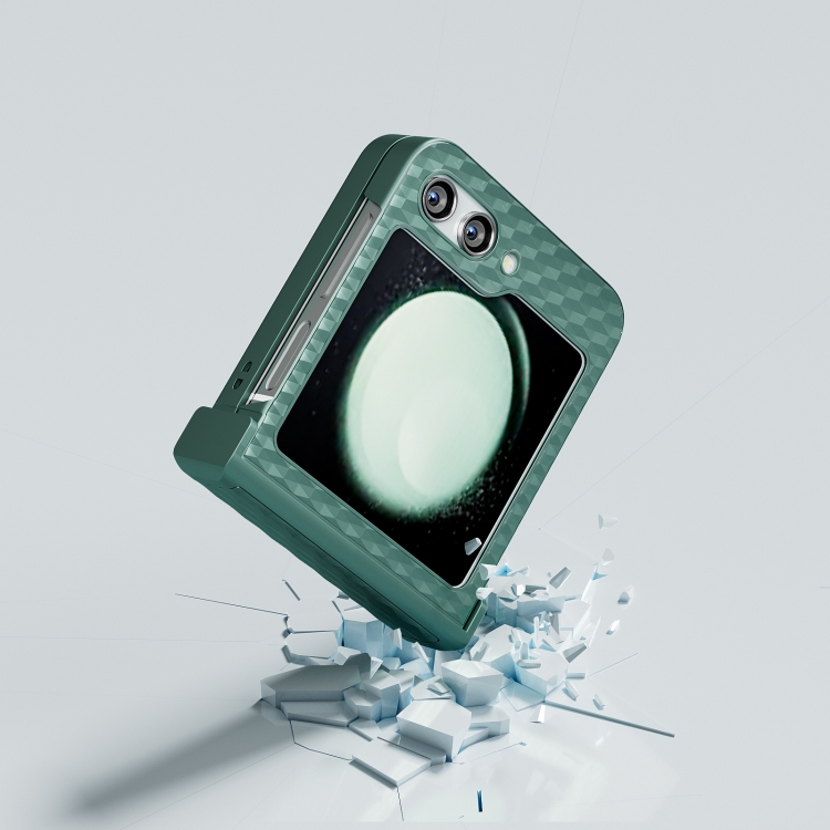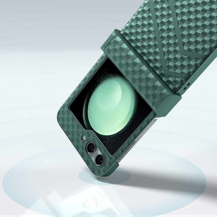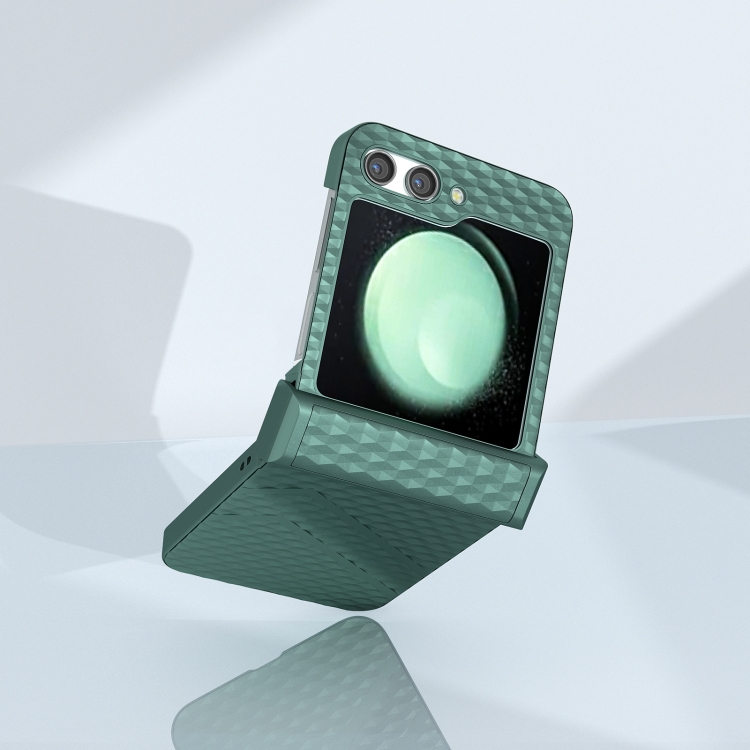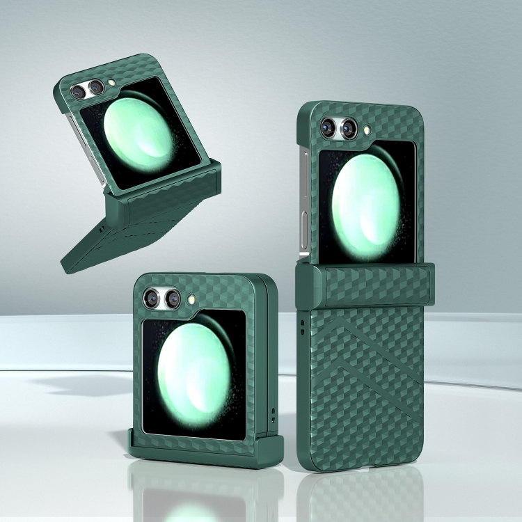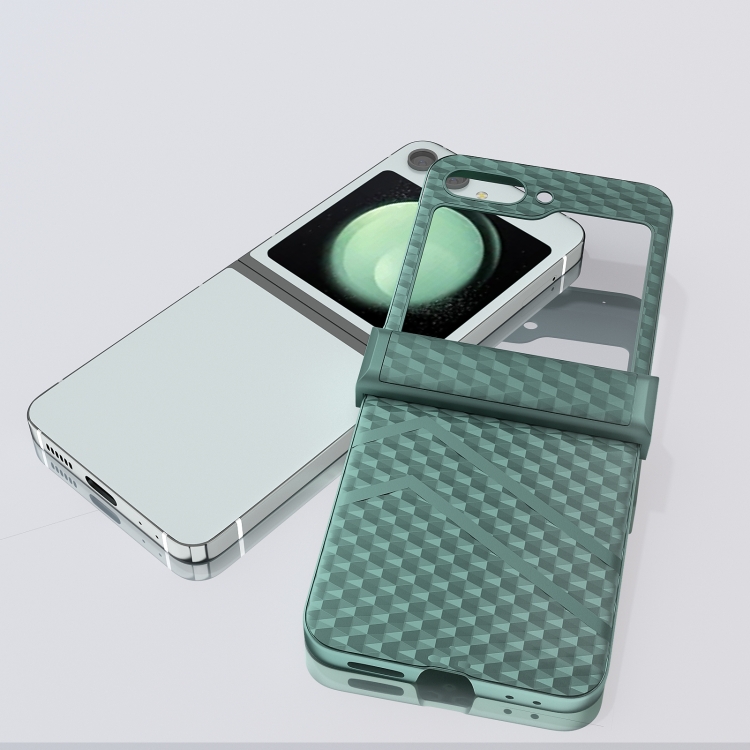 Estuche para teléfono Samsung Galaxy Z Flip5 5G 3 en 1 con PC mate patrón de onda y bisagra (Verde Oscuro)