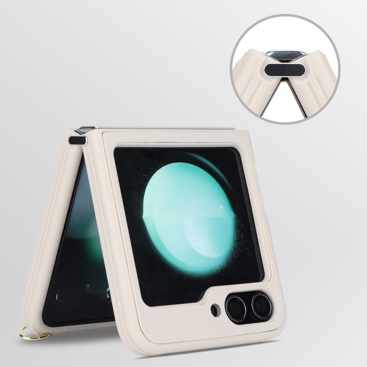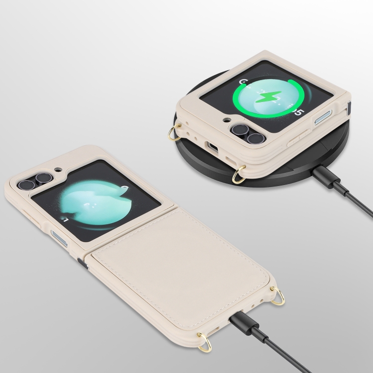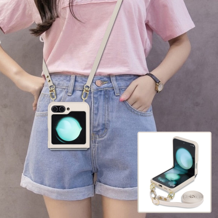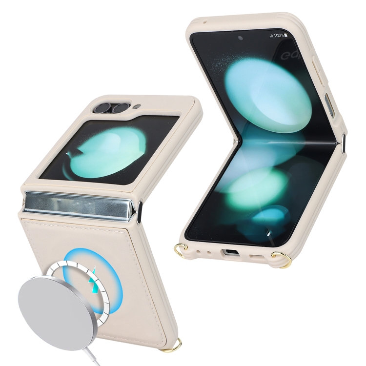 Estuche para Teléfono Samsung Galaxy Z Flip5 5G Crossbody R20 Magsafe de Cuero con Textura (Blanco)