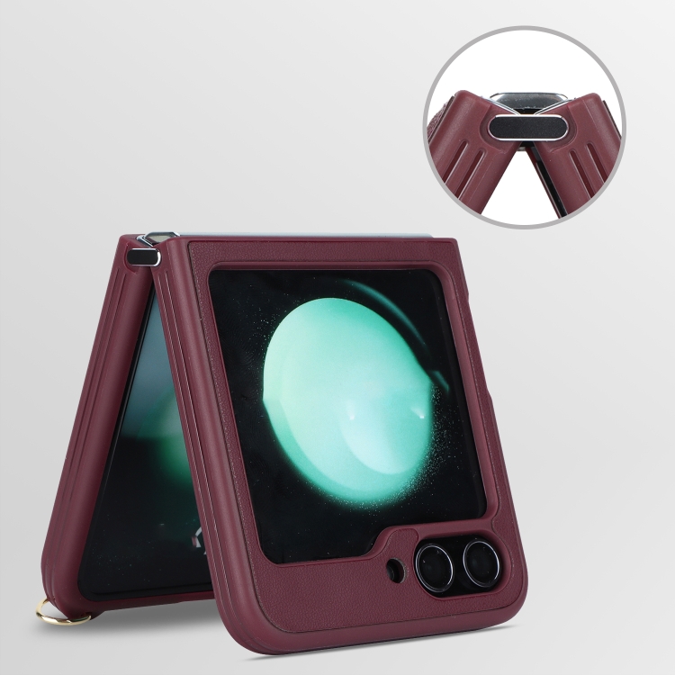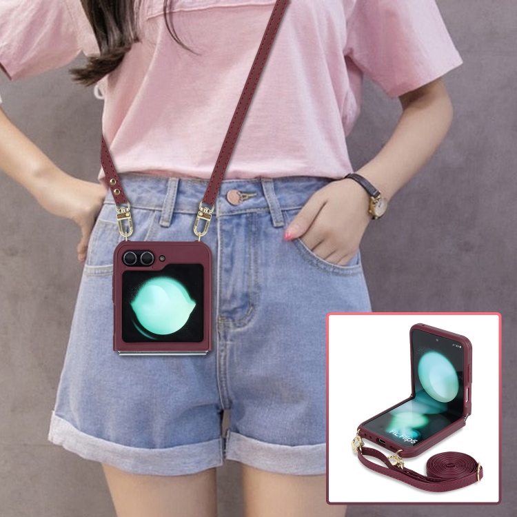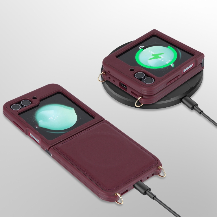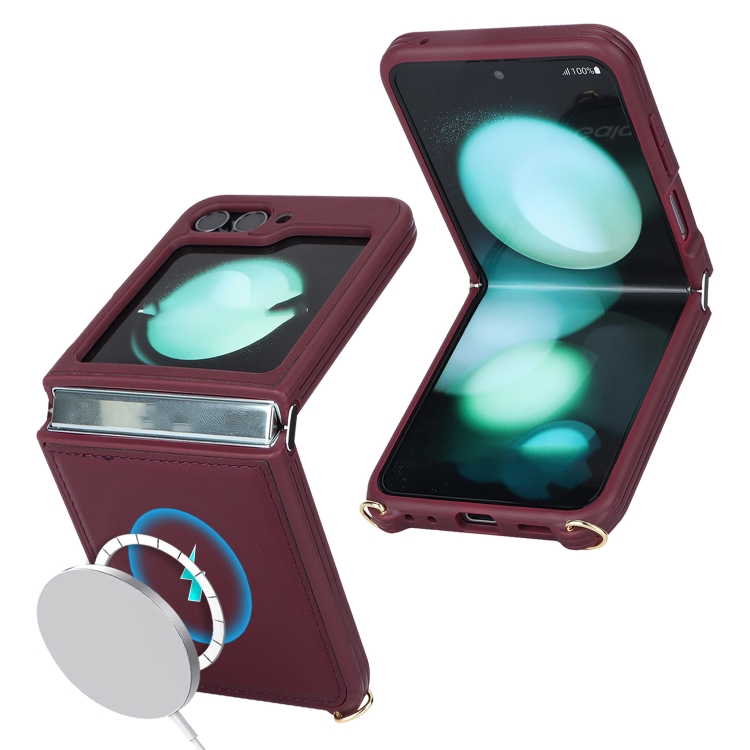 Funda para Samsung Galaxy Z Flip5 5G Crossbody R20 Cuero Magsafe con Textura (Marrón)