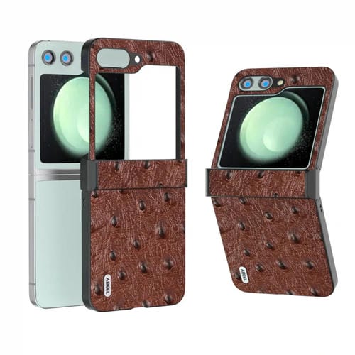 Funda para Teléfono Samsung Galaxy Z Flip5 Abeel Hinge Textura Avestruz Cuero Genuino (Café)
