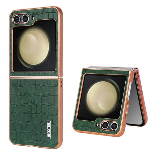 Estuche para Teléfono Samsung Galaxy Z Flip5 Azns Textura de Cocodrilo y Marco Galvanizado (Verde)