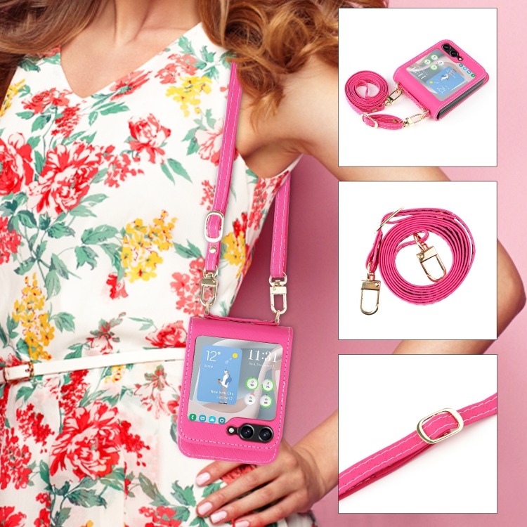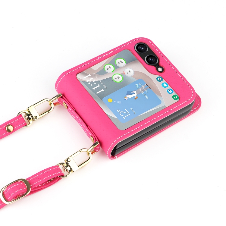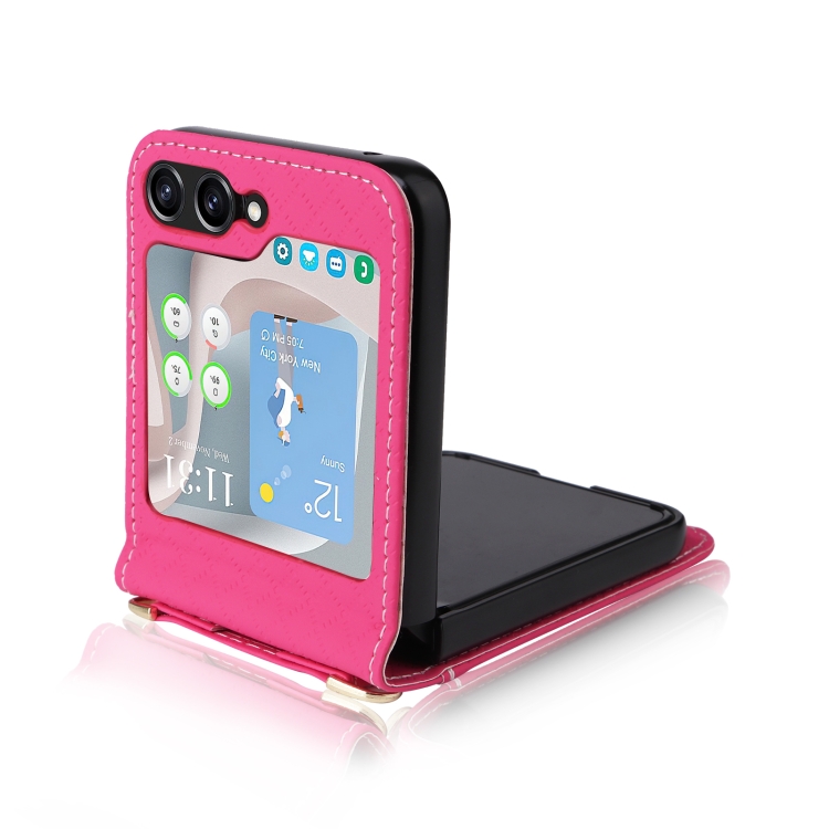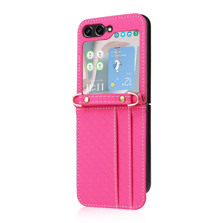 Funda para Teléfono Plegable Samsung Galaxy Z Flip5 Entramado de Diamantes Cruzado (Rojo Rosa)
