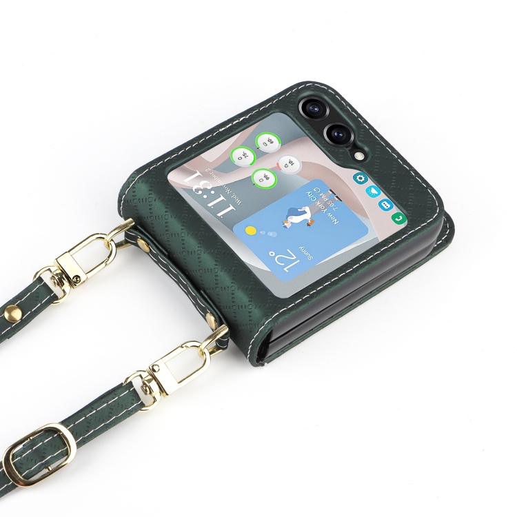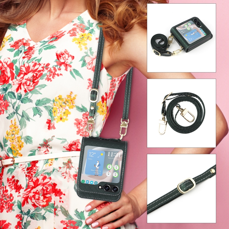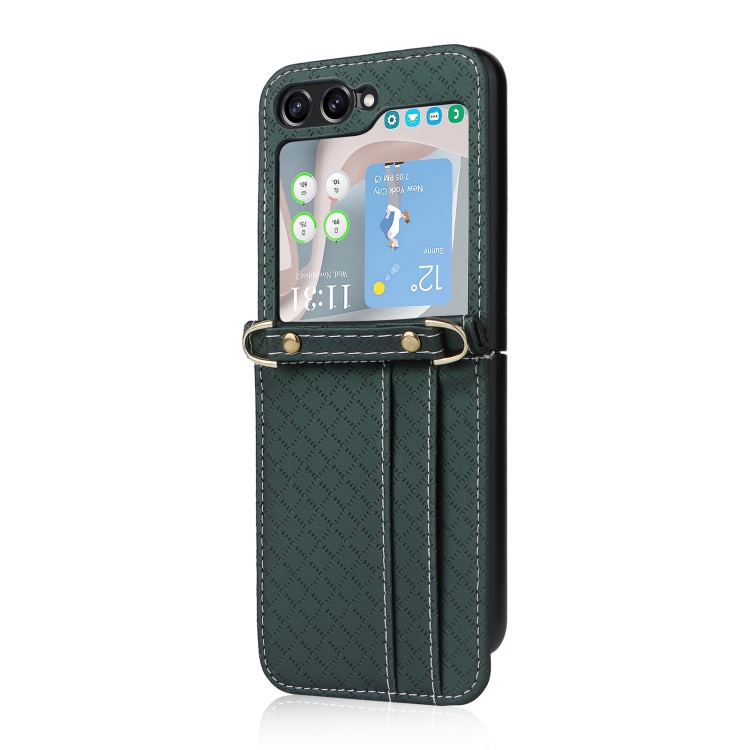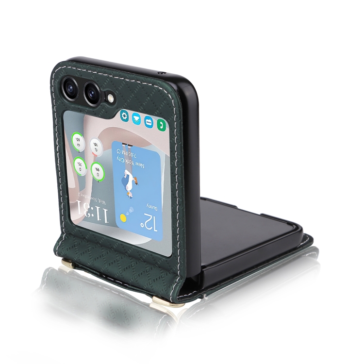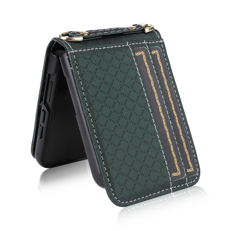 Funda para Teléfono Plegable Samsung Galaxy Z Flip5 Entramado de Diamantes Cruzados (Verde Oscuro)