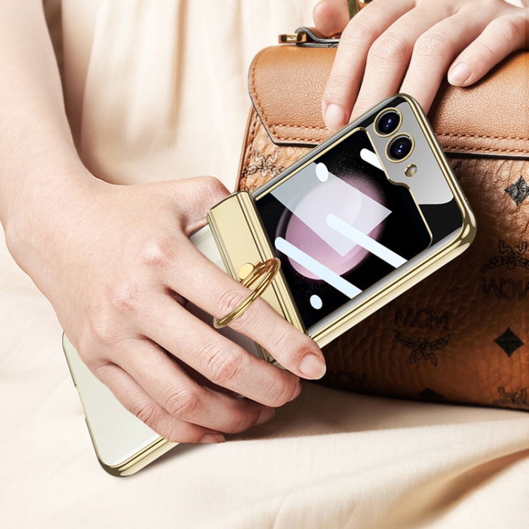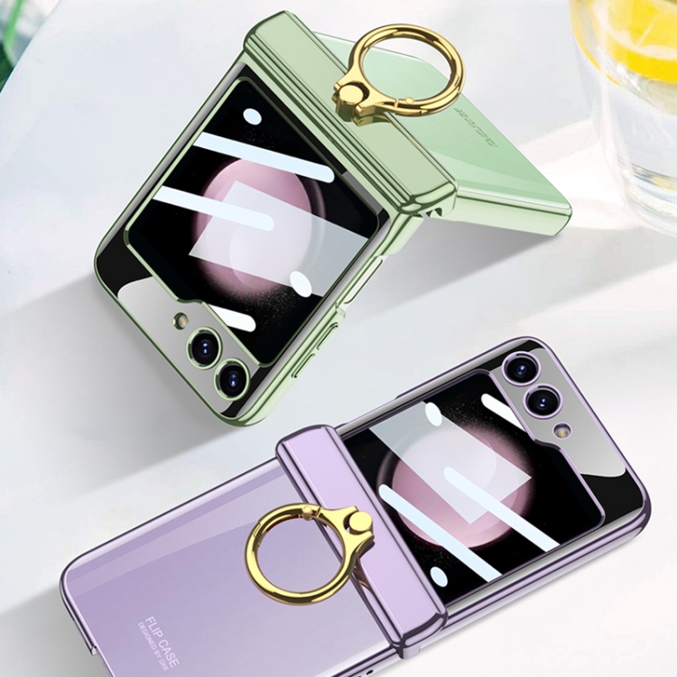 Estuche para Samsung Galaxy Z Flip5 Gkk Giratorio Magnético Plegable con Soporte para Anillo (Verde)