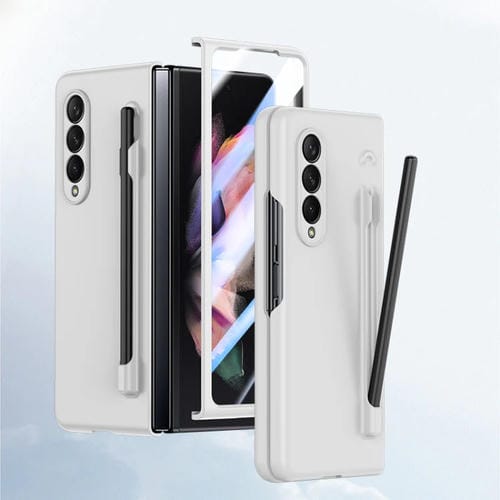 Estuche para Teléfono Samsung Galaxy Z Fold3 Sensación de Piel Integrada PC con Estuche para Bolígrafo (Blanco)