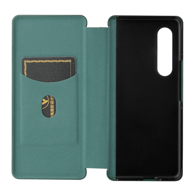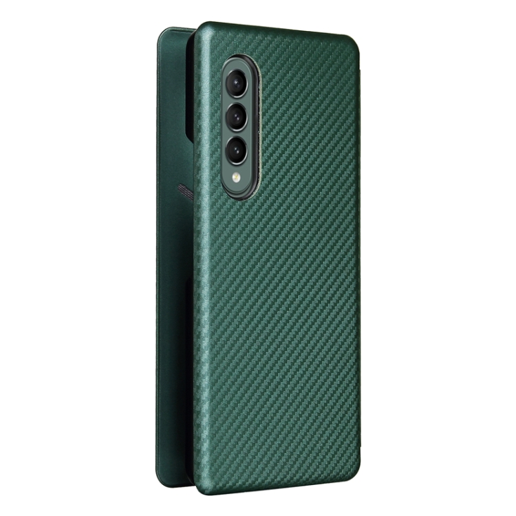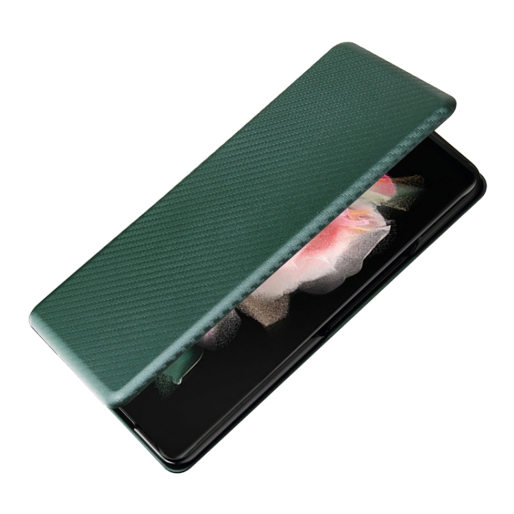 Funda de Teléfono Samsung Galaxy Z Fold4 Cuero Textura Fibra de Carbono (Verde)