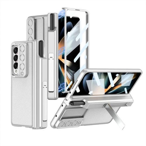 Funda de Cuero Gkk para Samsung Galaxy Z Fold4 con Tapa y Bisagra Magnética con Soporte (Plateado)