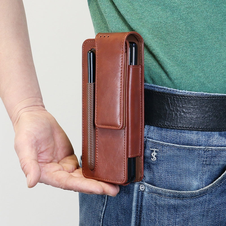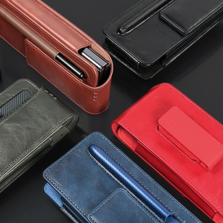 Bolso de Cuero Samsung Galaxy Z Fold5 Fold4 Fold3 Business Back Clip para Teléfono (Azul)