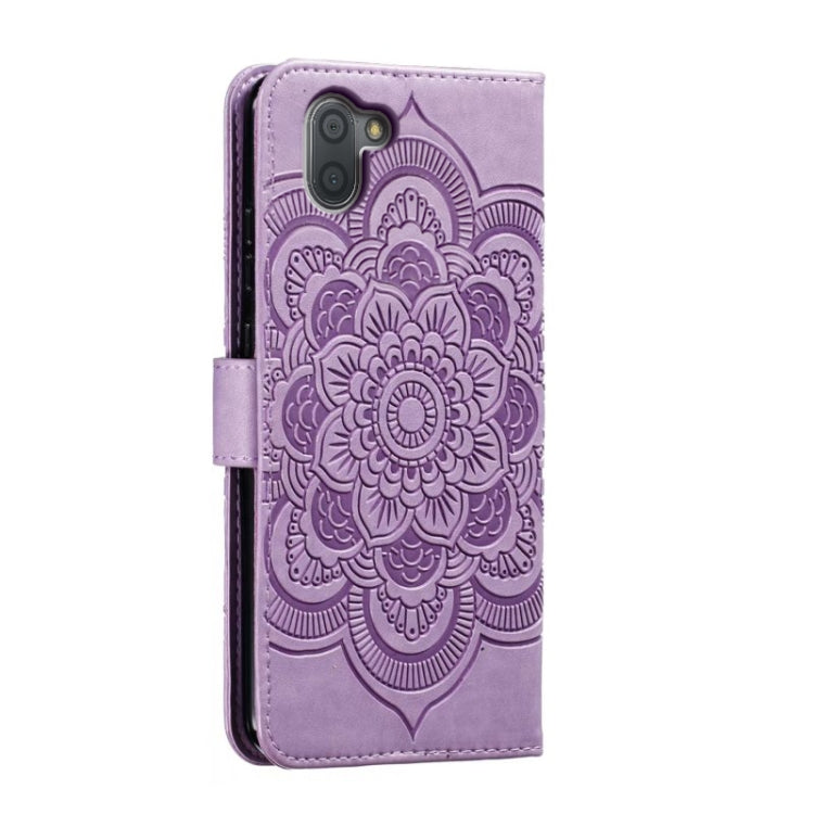 Funda de Cuero para Sharp Aquos R3 con Patrón En Relieve Sun Mandala (Púrpura)