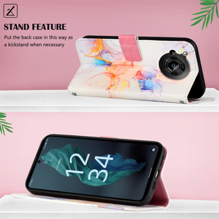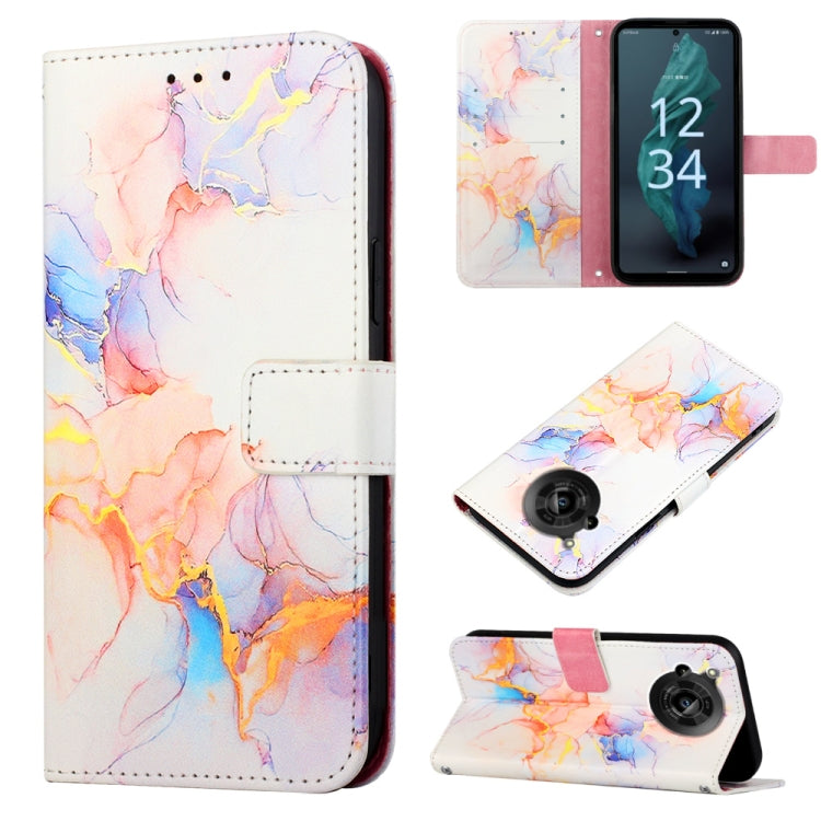 Funda Flip de Cuero para Sharp Aquos R7/Aquos P7 Pt003 con Patrón Mármol (Blanco)