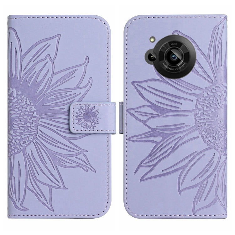 Funda Flip de Cuero para Sharp Aquos R7 / P7 con Cordón y Diseño Sun Flower (Púrpura)