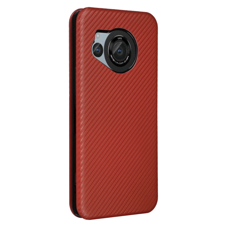 Funda de Teléfono para Sharp Aquos R8 Cuero con Textura de Fibra de Carbono (Marrón)