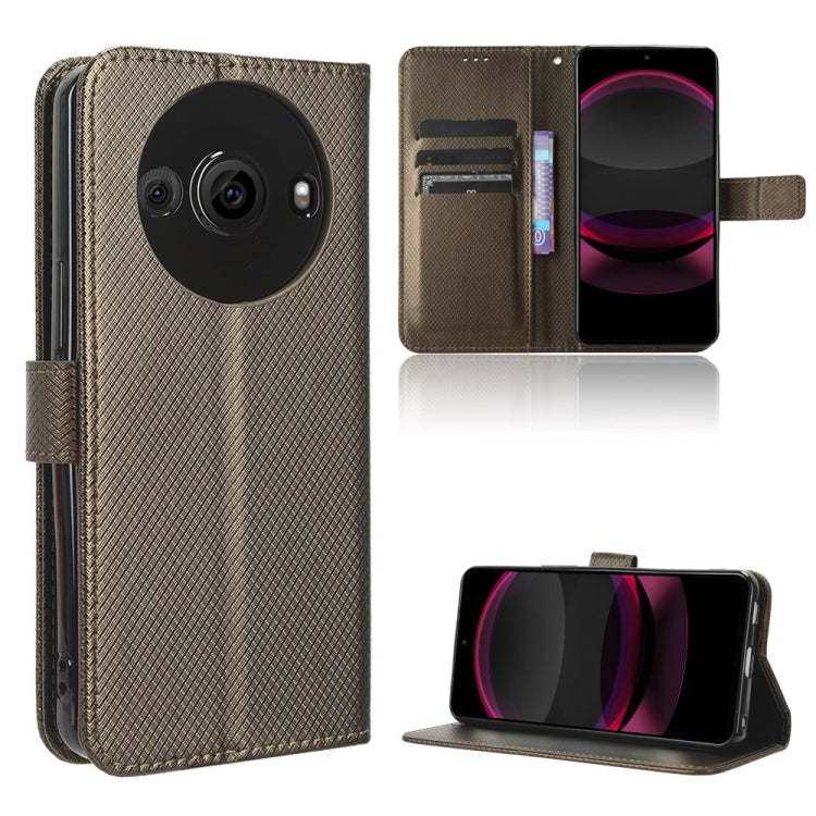 Funda de Cuero para Sharp Aquos R8 Pro con Textura de Diamante (Marrón)
