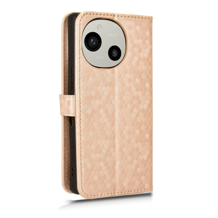 Funda de Cuero Sharp Aquos R9 Textura Punto de Panal (Dorado)