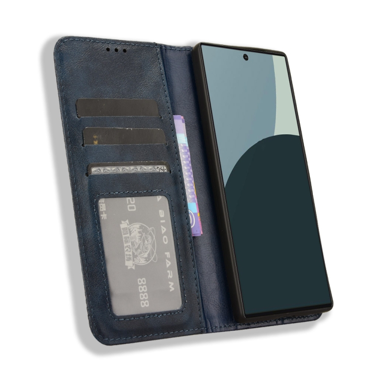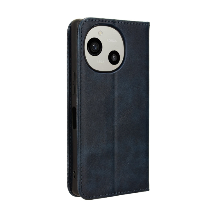 Funda para Sharp Aquos R9 de Cuero con Textura Retro y Hebilla Magnética (Azul)