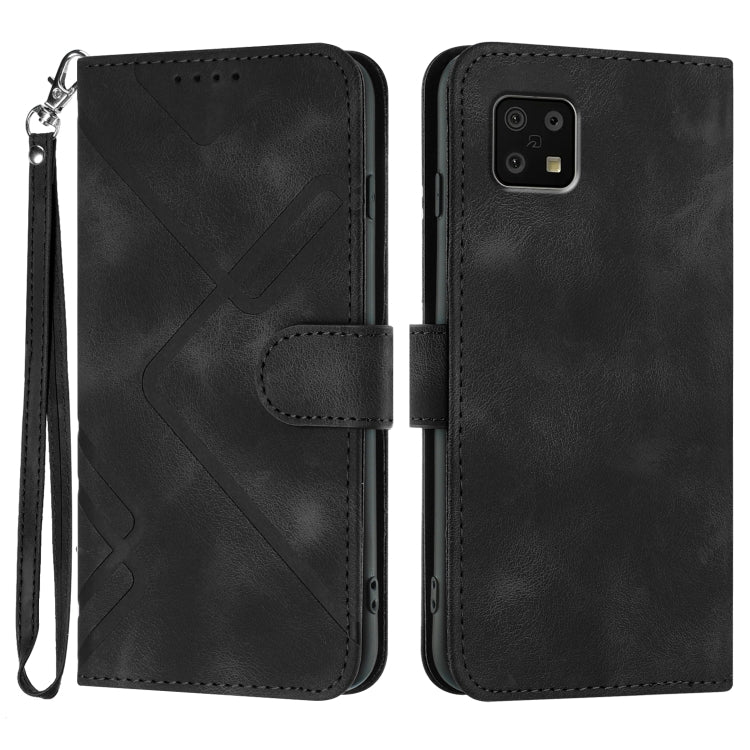 Funda de Cuero para Sharp Aquos Sense 6 y Sense6S con Patrón de Línea y Textura Piel (Negro)