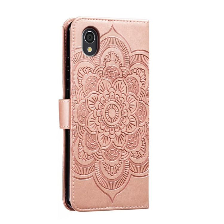 Funda de Cuero para Sharp Aquos Sense2 con Patrón En Relieve Sun Mandala (Oro Rosa)