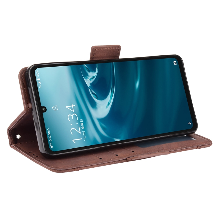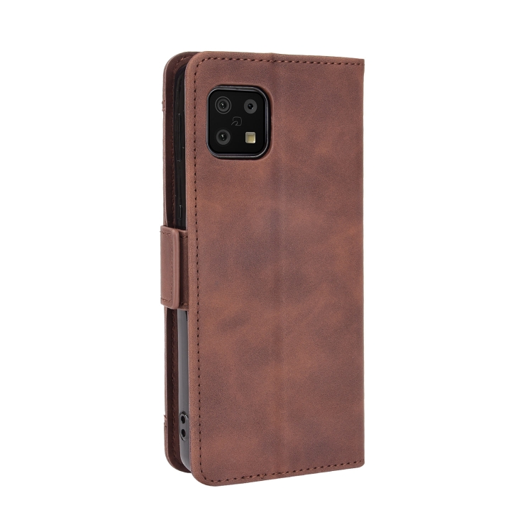 Funda Flip de Cuero para Sharp Aquos Sense6 con Soporte, Ranuras para Tarjetas y Marco de Fotos (Marrón)