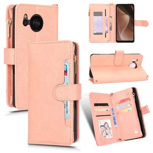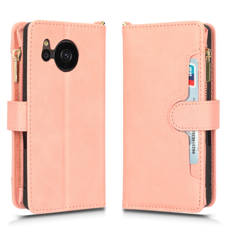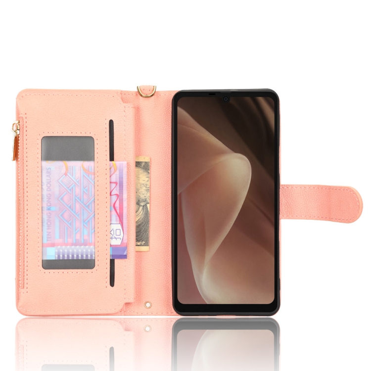 Funda de Cuero con Cremallera para Sharp Aquos Sense7 Litchi Textura (Rosa)