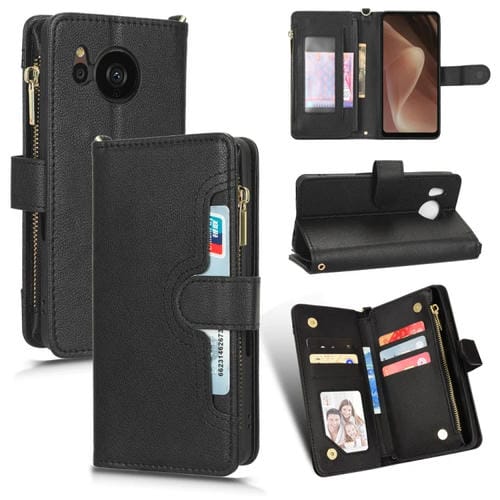 For Sharp Aquos Sense7 Plus Litchi Texture Leather Zipper Phone Case(Black)
