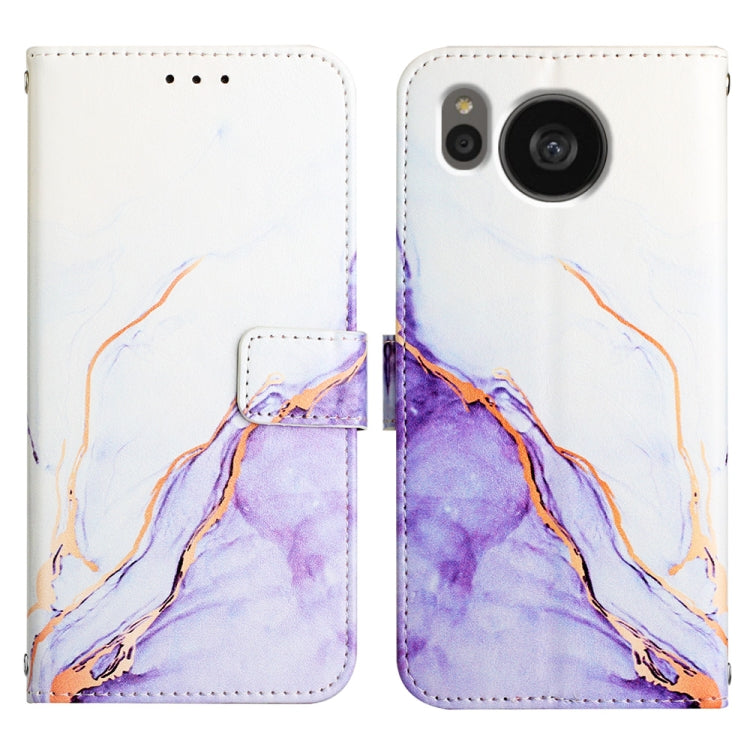 Funda de Cuero con Tapa para Sharp Aquos Sense7 Plus Pt003 Patrón Mármol (Blanco Púrpura)