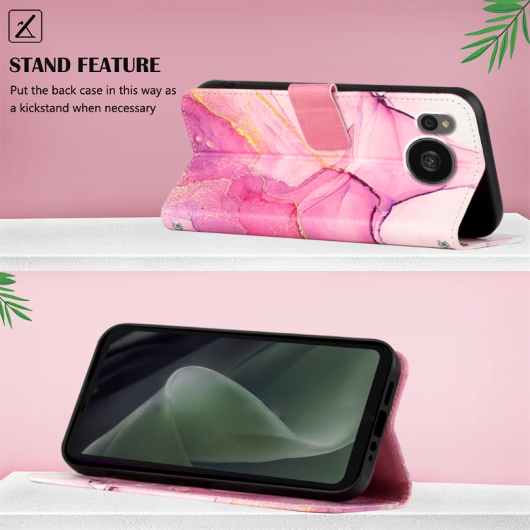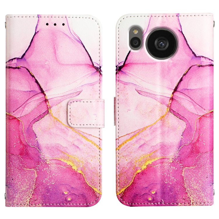 Funda de Cuero con Tapa para Sharp Aquos Sense7 Plus Pt003 Patrón de Mármol (Rosa Púrpura Oro)