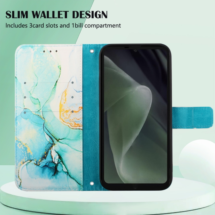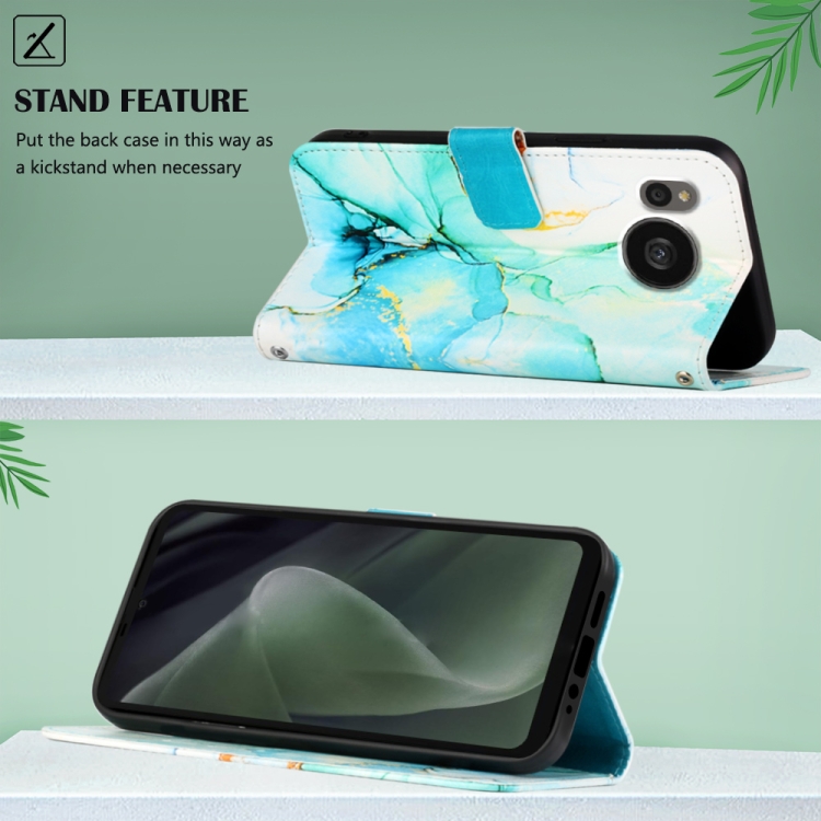 Funda de Cuero con Tapa para Sharp Aquos Sense7 Plus Pt003 Patrón Mármol (Verde)