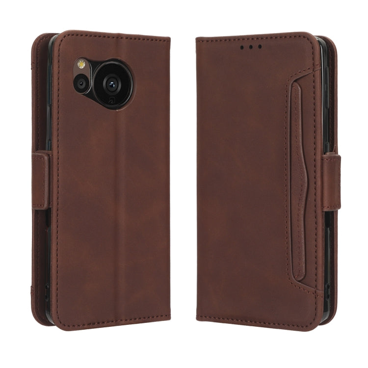 Funda de Cuero para Sharp Aquos Sense7 Plus con Textura Skin Feel y Ranuras para Tarjetas (Marrón)