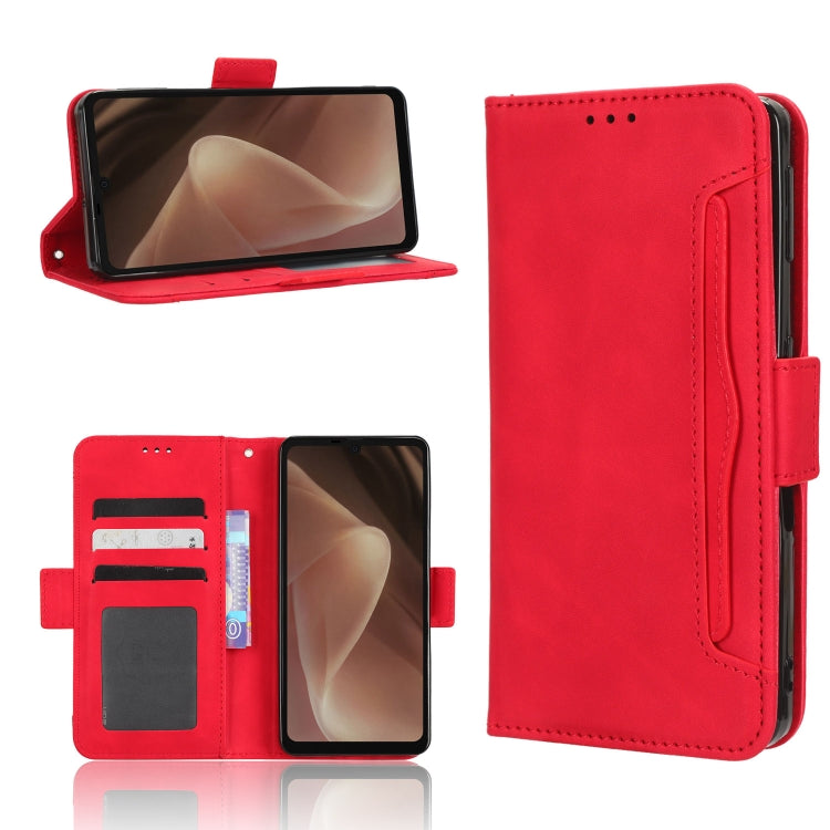Funda de Cuero para Sharp Aquos Sense7 Plus con Textura Becerro y Ranuras para Tarjetas (Rojo)