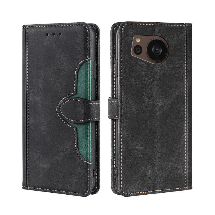 Funda de Cuero para Sharp Aquos Sense7 Plus Skin Feel con Hebilla Magnética (Negro)