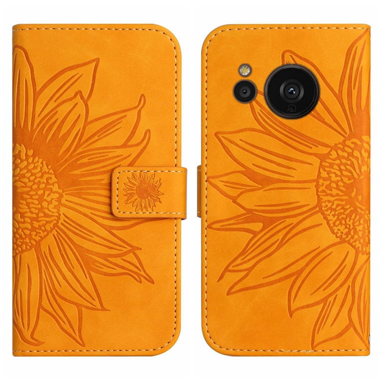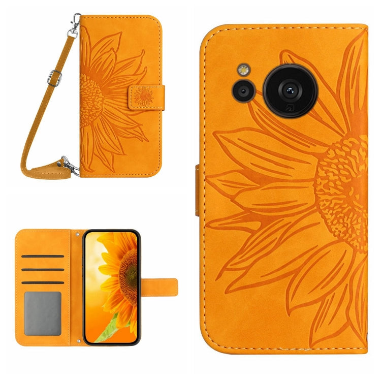 Funda Flip de Cuero para Sharp Aquos Sense7 Sh-V48 Ht04 con Cordón y Diseño Sun Flower (Amarillo)