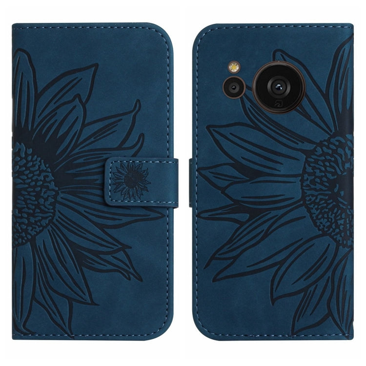 Funda Flip de Cuero para Sharp Aquos Sense7 Sh-V48 Ht04 con Cordón y Diseño Sun Flower (Azul Tinta)
