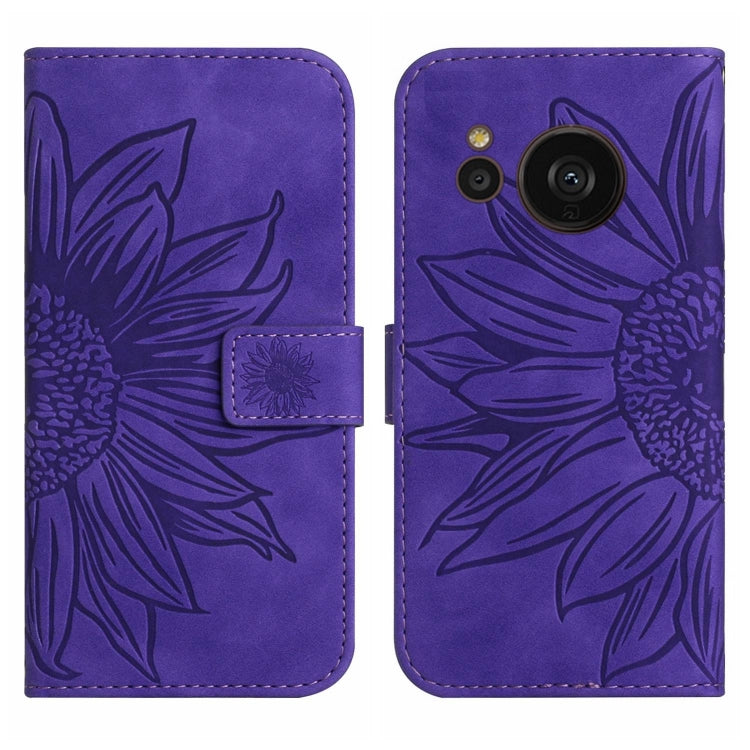 Funda Flip de Cuero para Sharp Aquos Sense7 Sh-V48 Ht04 con Cordón y Diseño Sun Flower (Púrpura Oscuro)