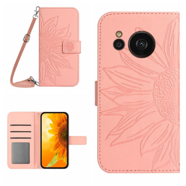 Funda Flip de Cuero para Sharp Aquos Sense7 Sh-V48 Ht04 con Cordón y Diseño Sun Flower (Rosa)