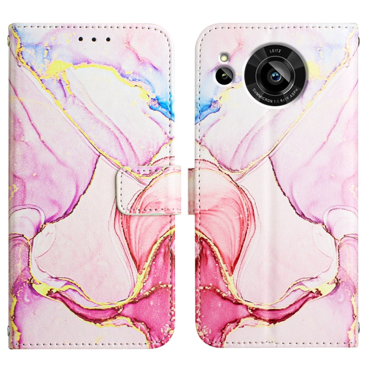 Funda Flip de Cuero para Sharp Aquos Sense7 Sh-V48 Pt003 con Patrón de Mármol (Oro Rosa)