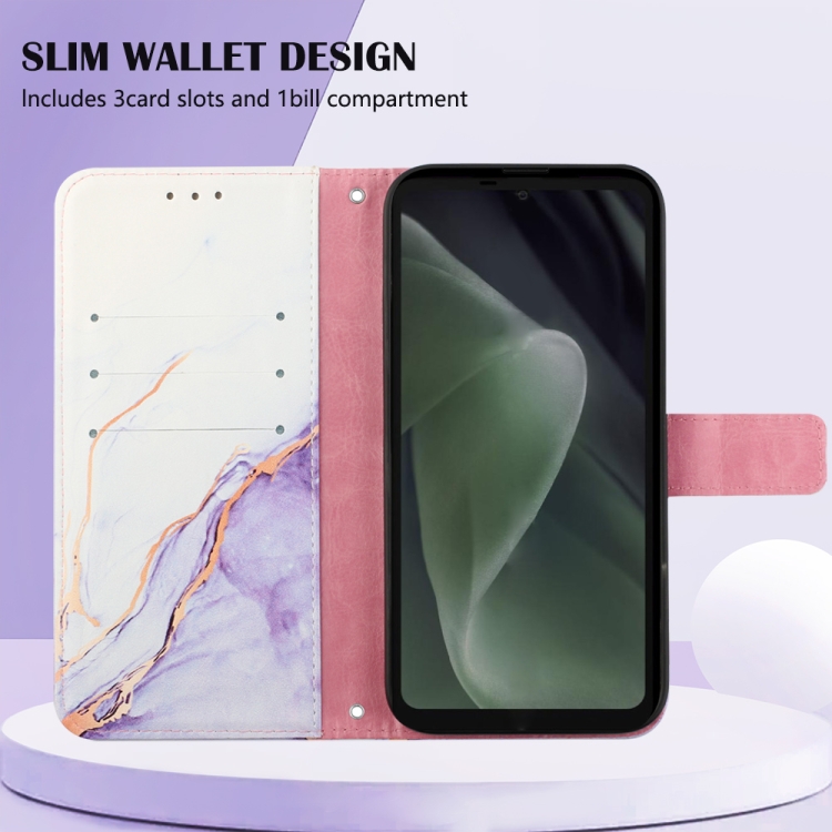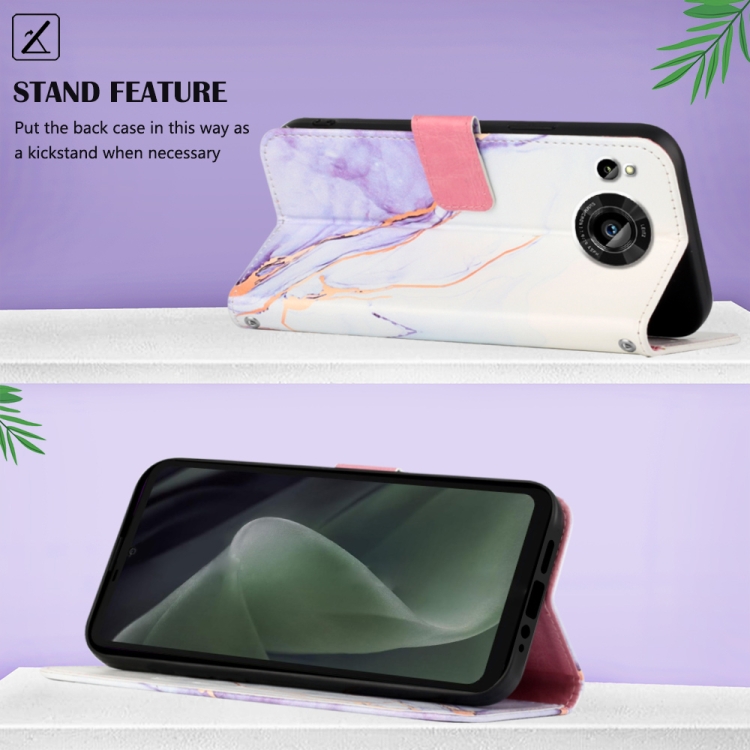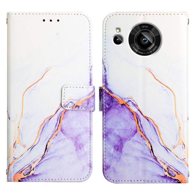 Funda de Cuero con Tapa para Sharp Aquos Sense7 Sh-V48 Pt003 Patrón Mármol (Blanco Púrpura)
