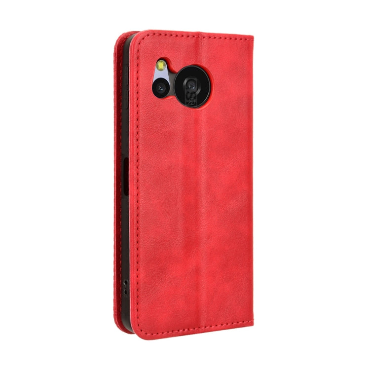 Funda para Sharp Aquos Sense8 de Cuero con Textura Retro y Hebilla Magnética (Rojo)