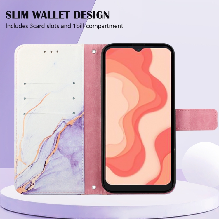 Funda de Cuero con Tapa para Sharp Aquos V6/V6 Plus Pt003 Patrón Mármol (Blanco Púrpura)