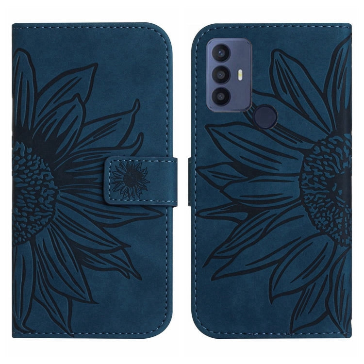 Funda Flip de Cuero para Sharp Aquos V6 y V6 Plus con Cordón y Diseño Sun Flower (Azul Tinta)