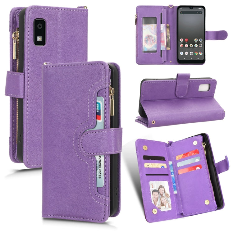 For Sharp Aquos Wish 3 Litchi Texture Zipper Leather Phone Case (Purple)