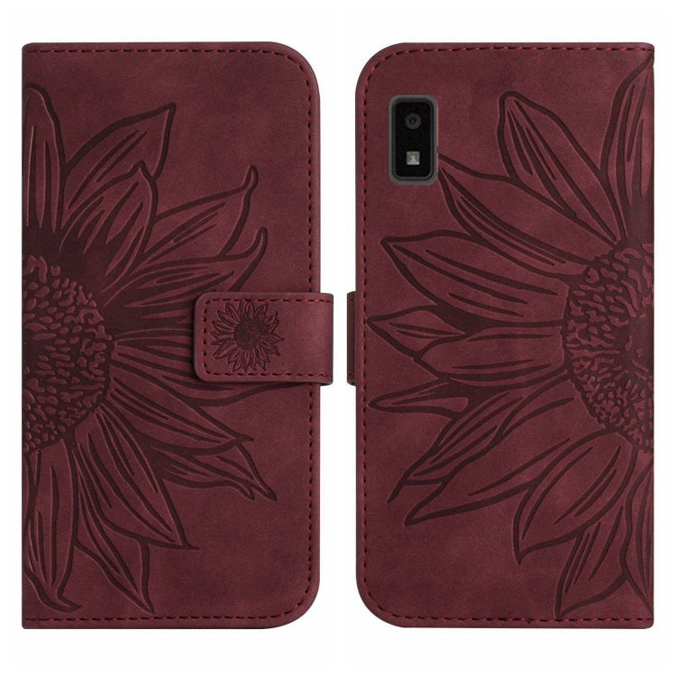 Funda de Cuero para Sharp Aquos Wish con Patrón Sun Flower y Cordón (Rojo Vino)