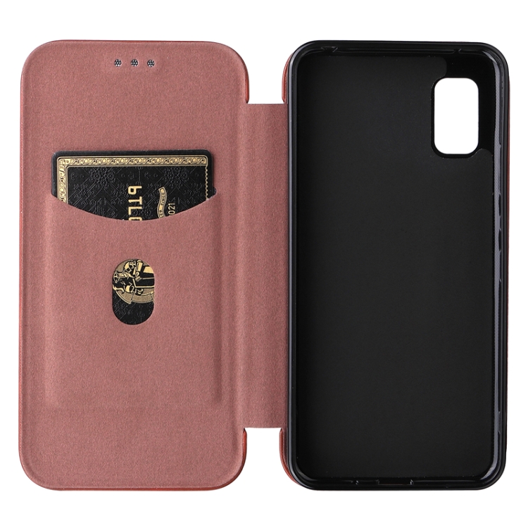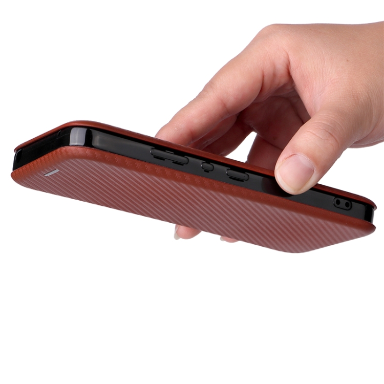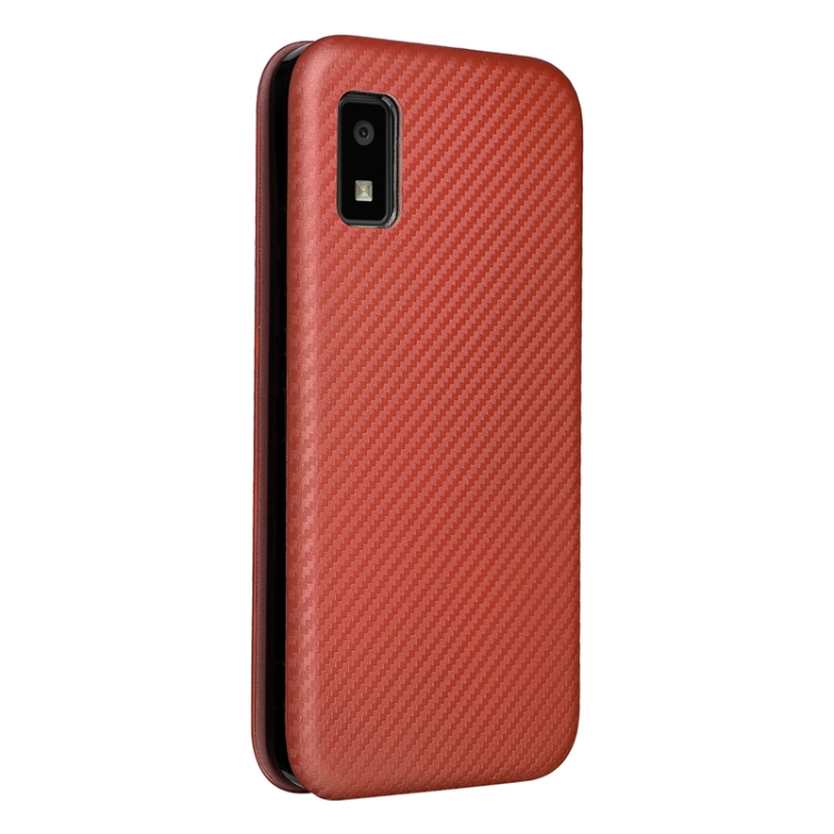 Funda Telefónica Sharp Aquos Wish SHG06 Textura Fibra de Carbono Flip Horizontal Magnética (Brown)