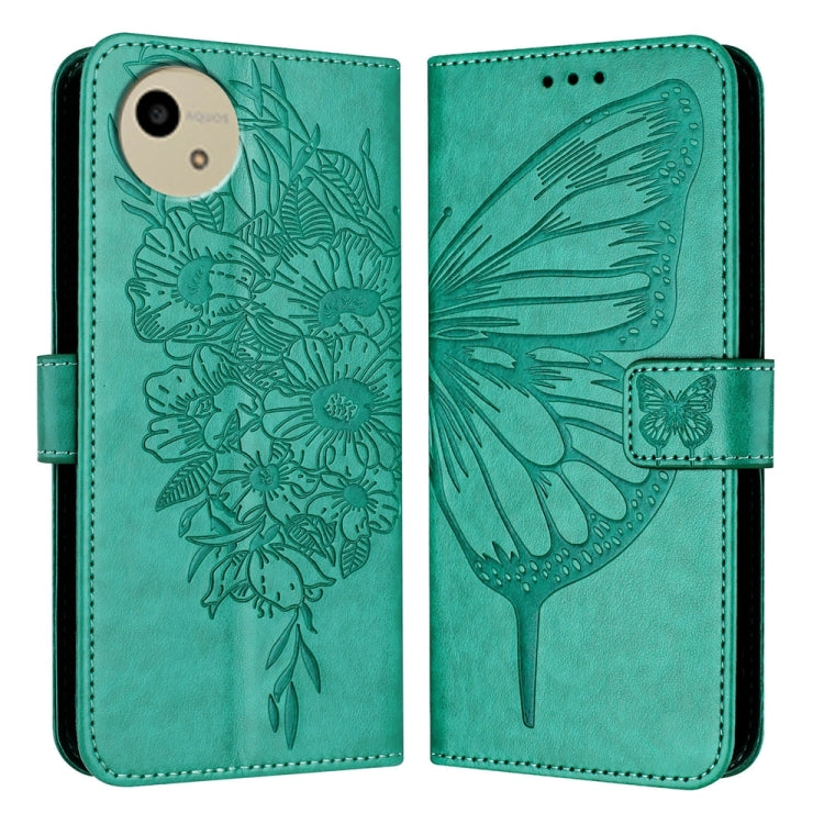 Funda de Cuero para Sharp Aquos Wish4 Sh-52E con Mariposa en Relieve (Verde)