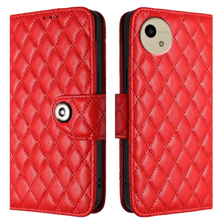 Funda para Teléfono Sharp Aquos Wish4 Sh-52E con Tapa de Cuero Textura Rómbica y Cordón (Rojo)