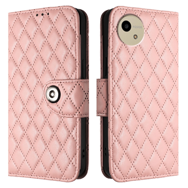 Funda para Sharp Aquos Wish4 Sh-52E con Tapa de Cuero Textura Rómbica y Cordón (Rosa Coral)