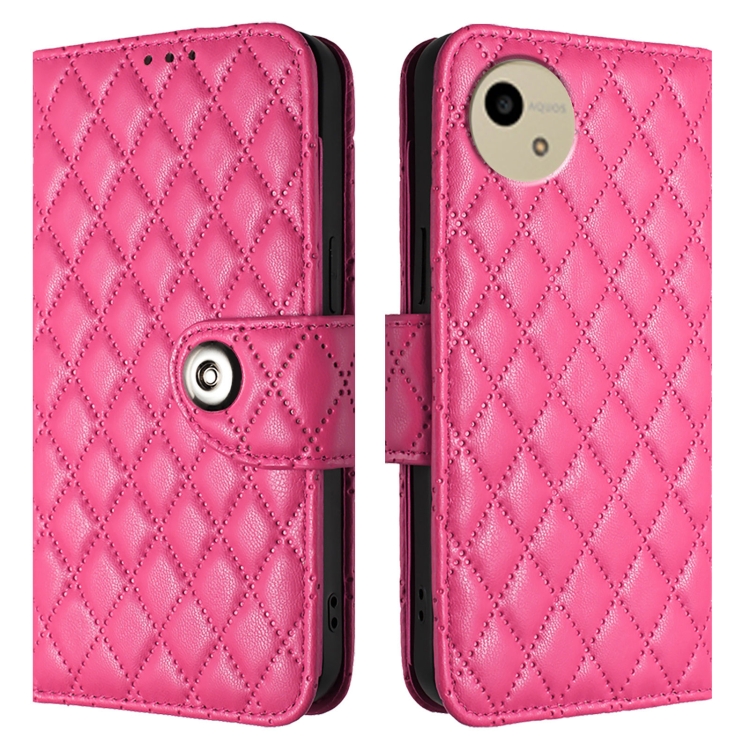 Funda para Sharp Aquos Wish4 Sh-52E de Cuero con Tapa Textura Rómbica y Cordón (Rojo Rosa)