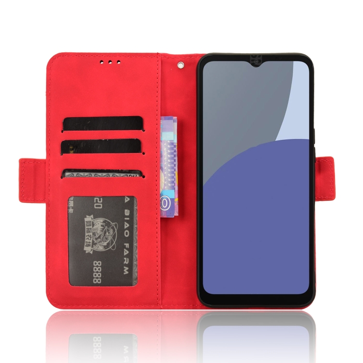 Funda para Sharp Aquos Wish4 Skin Feel con Textura de Becerro y Ranuras para Tarjetas (Rojo)