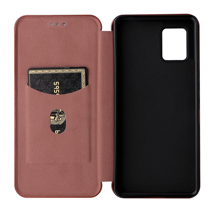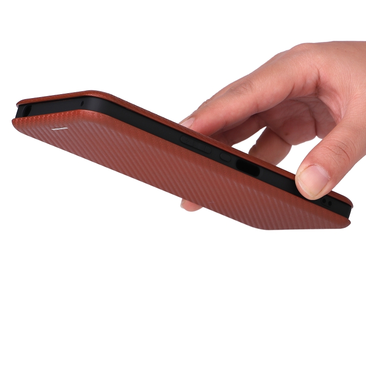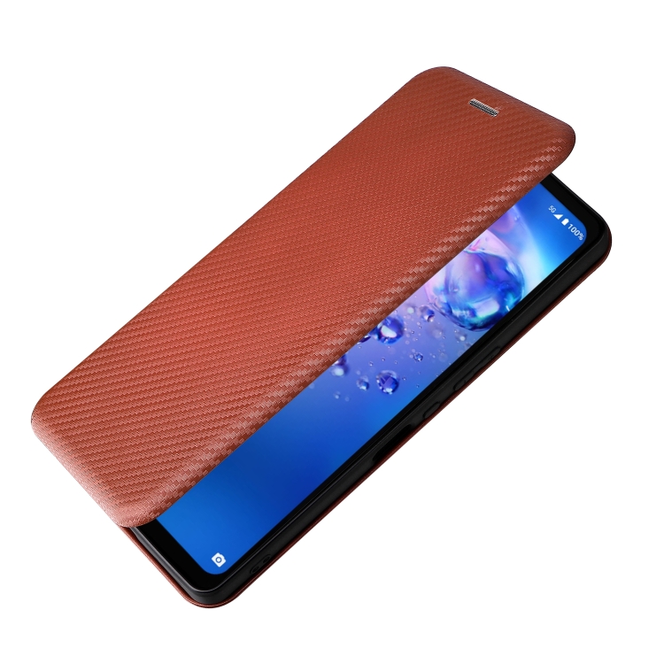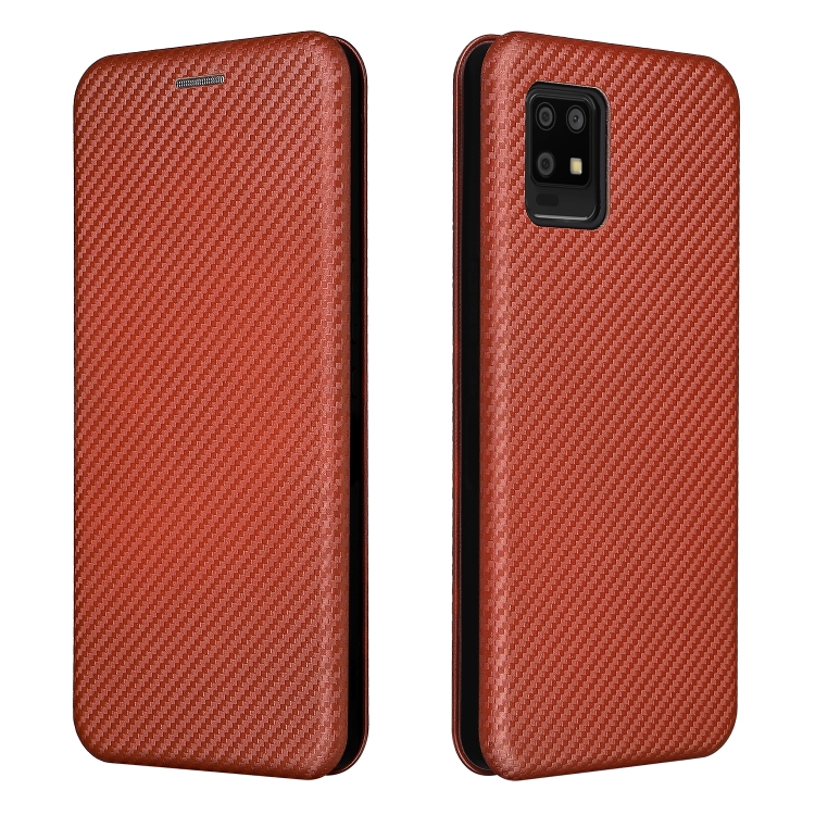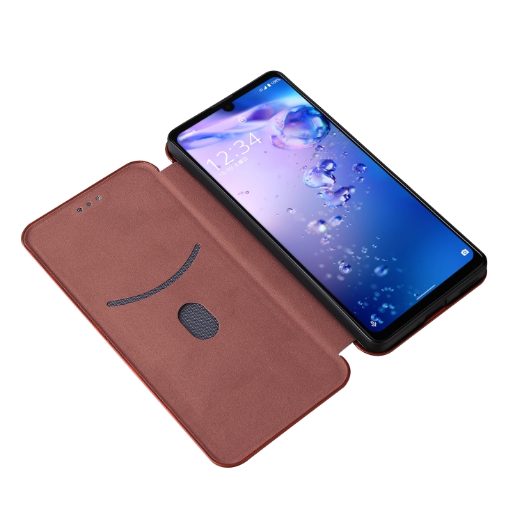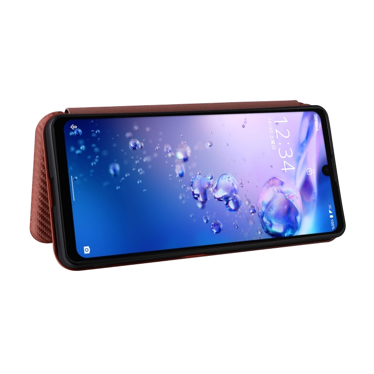 Funda para Sharp Aquos Zero6 Carbono Fibra de Carbono Magnético Horizontal Flip TPU + PC + Cuero PU con Ranura (Marrón)